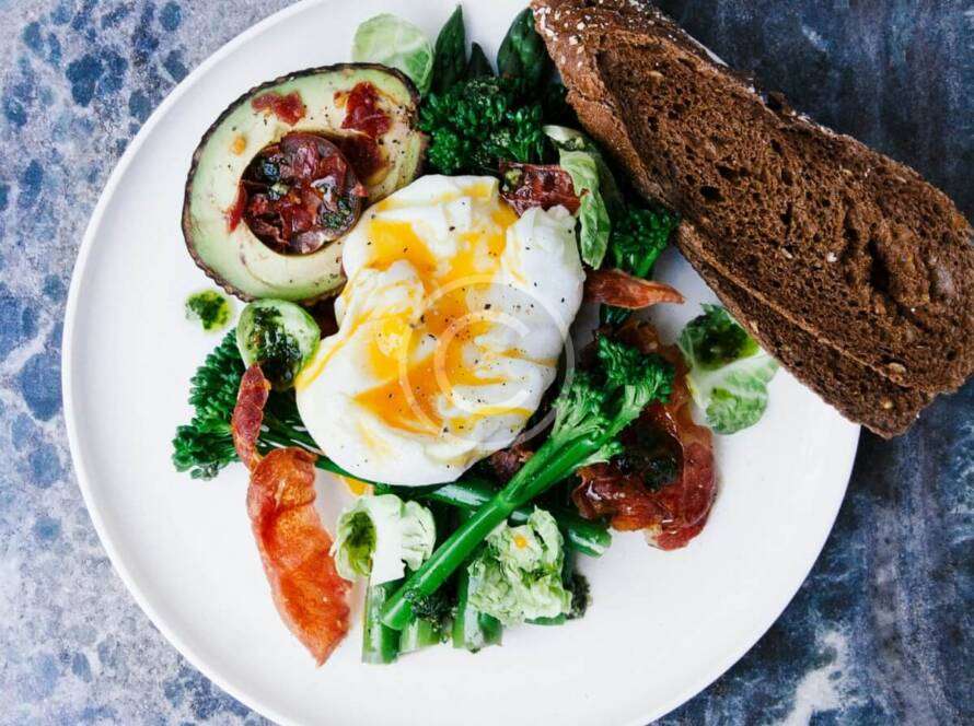 Salad with poached egg